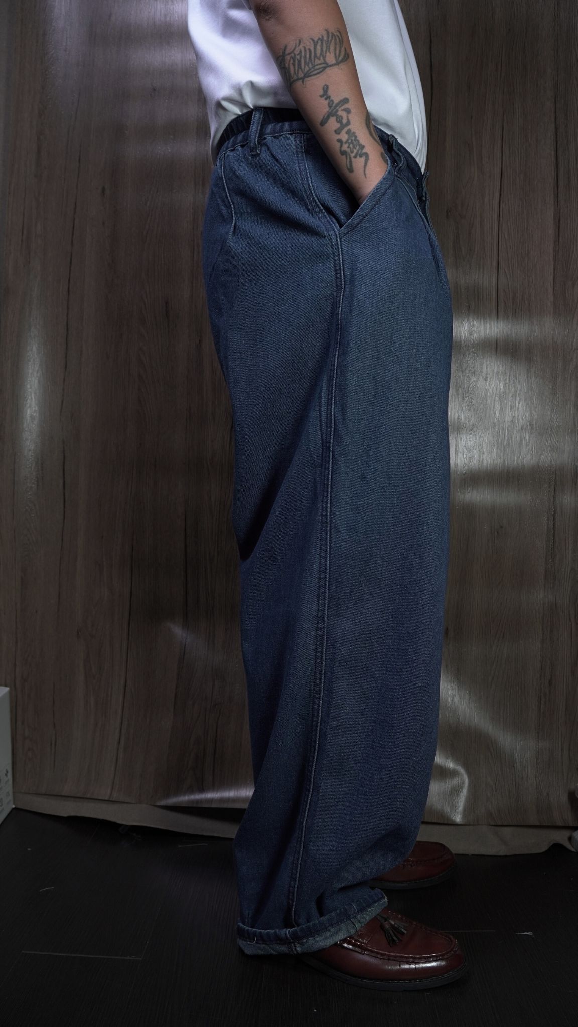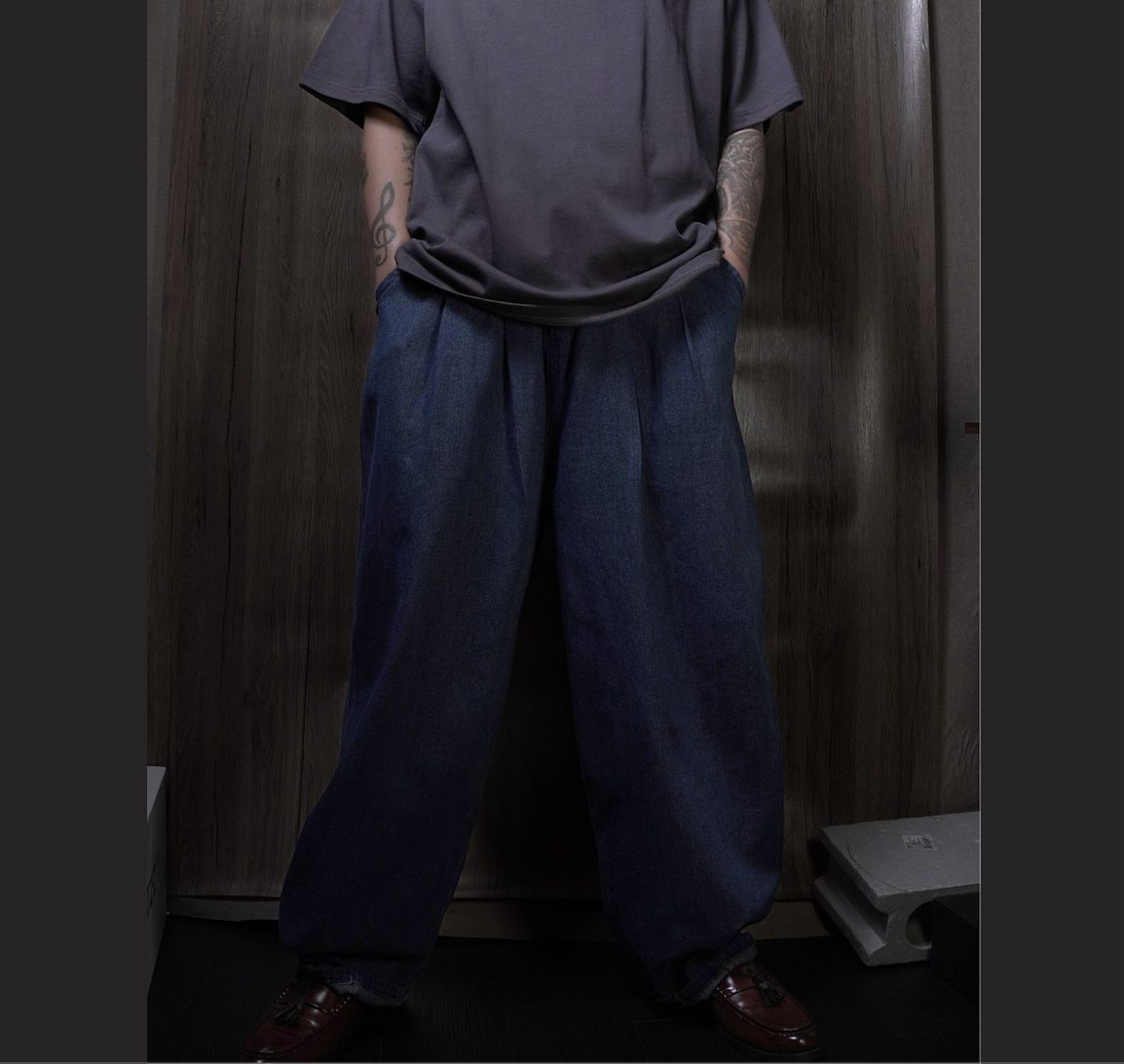 丹寧西裝長褲:粗獷中的優雅邏輯。 Rugged Texture. Refined Silhouette.