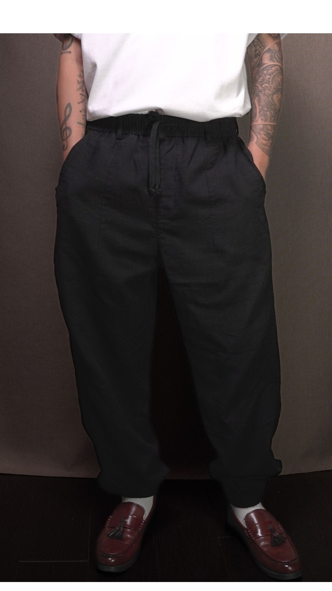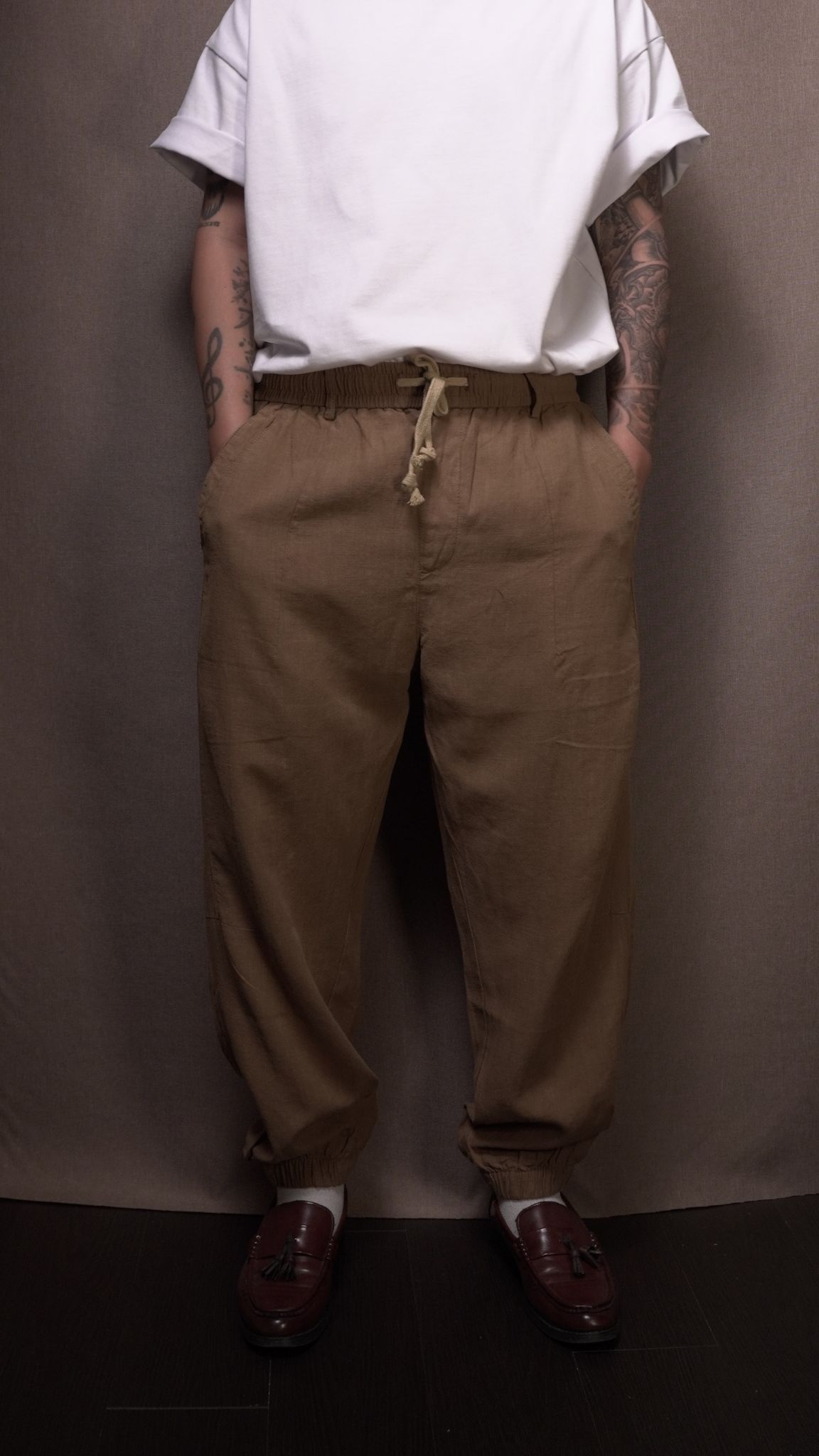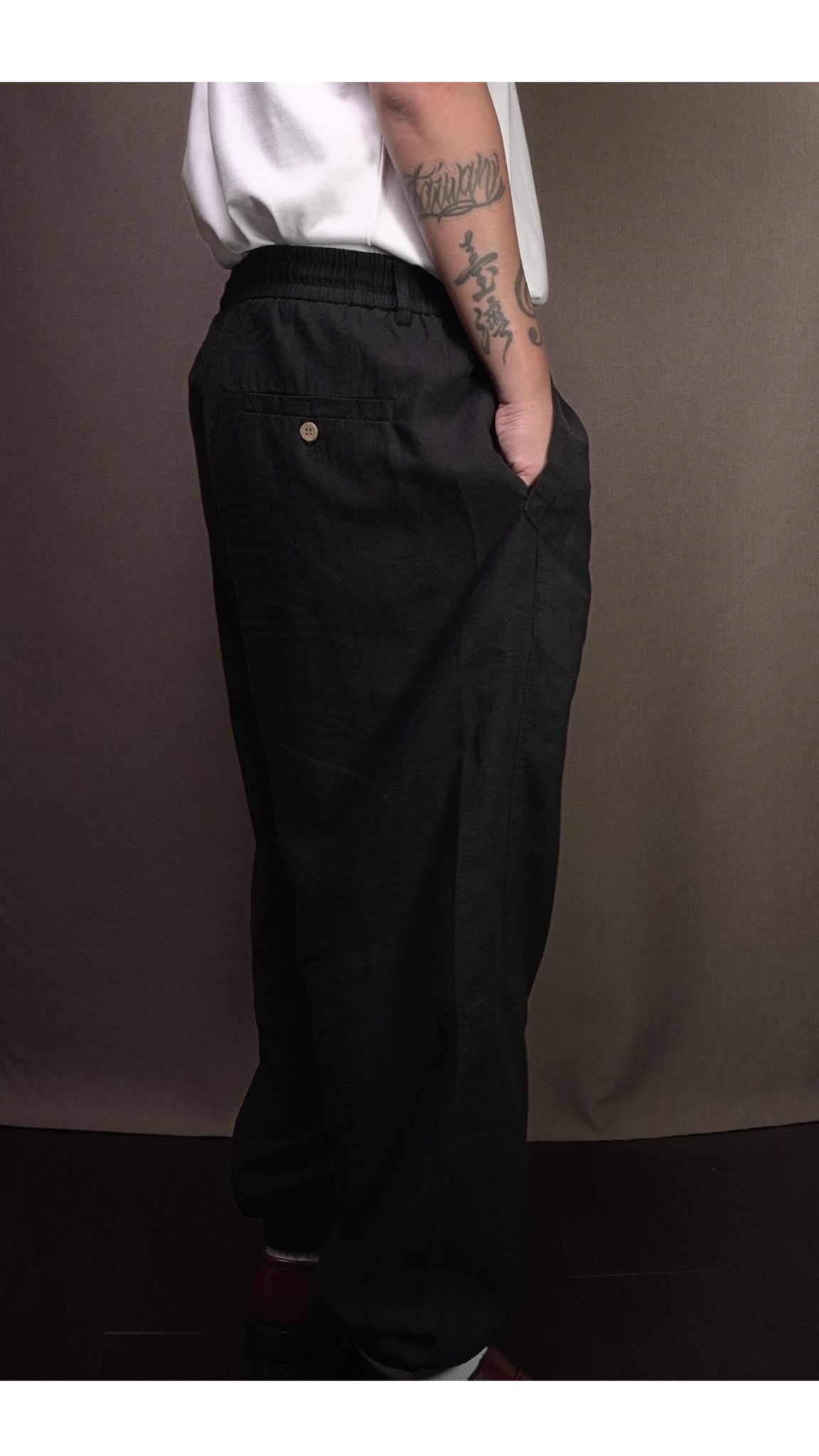 [產品哲學 | Product Philosophy] 這不僅是一條褲子,更是一次材料科學與風格的完美揉合。天絲的極致滑順對撞亞麻的自然質地,創造出無與倫比的舒適體感。 More than just a pair of trousers—a seamless blend of material science and style. The silk-like smoothness of Tencel meets the organic texture of Linen, delivering unparalleled comfort.
