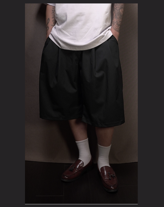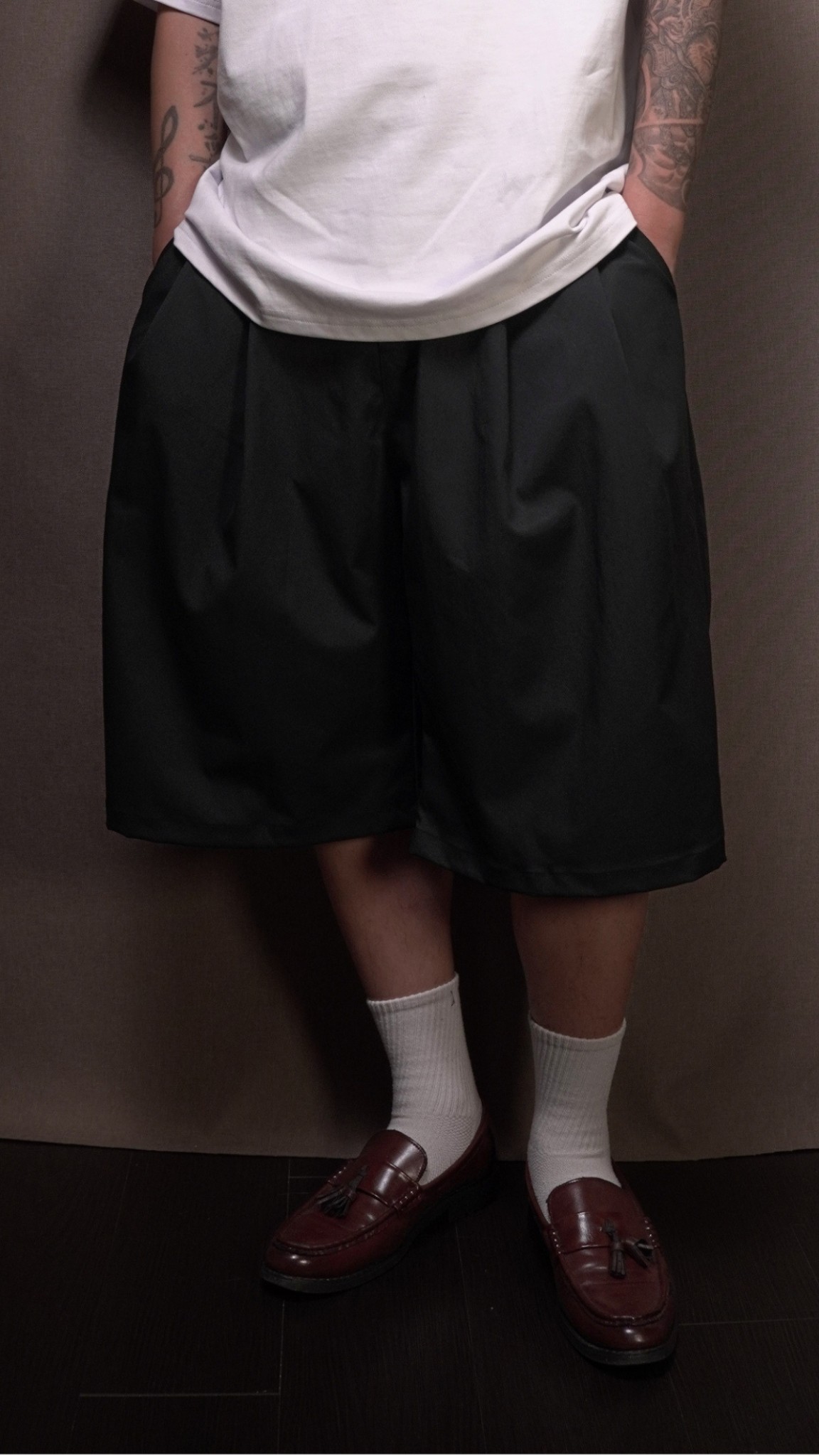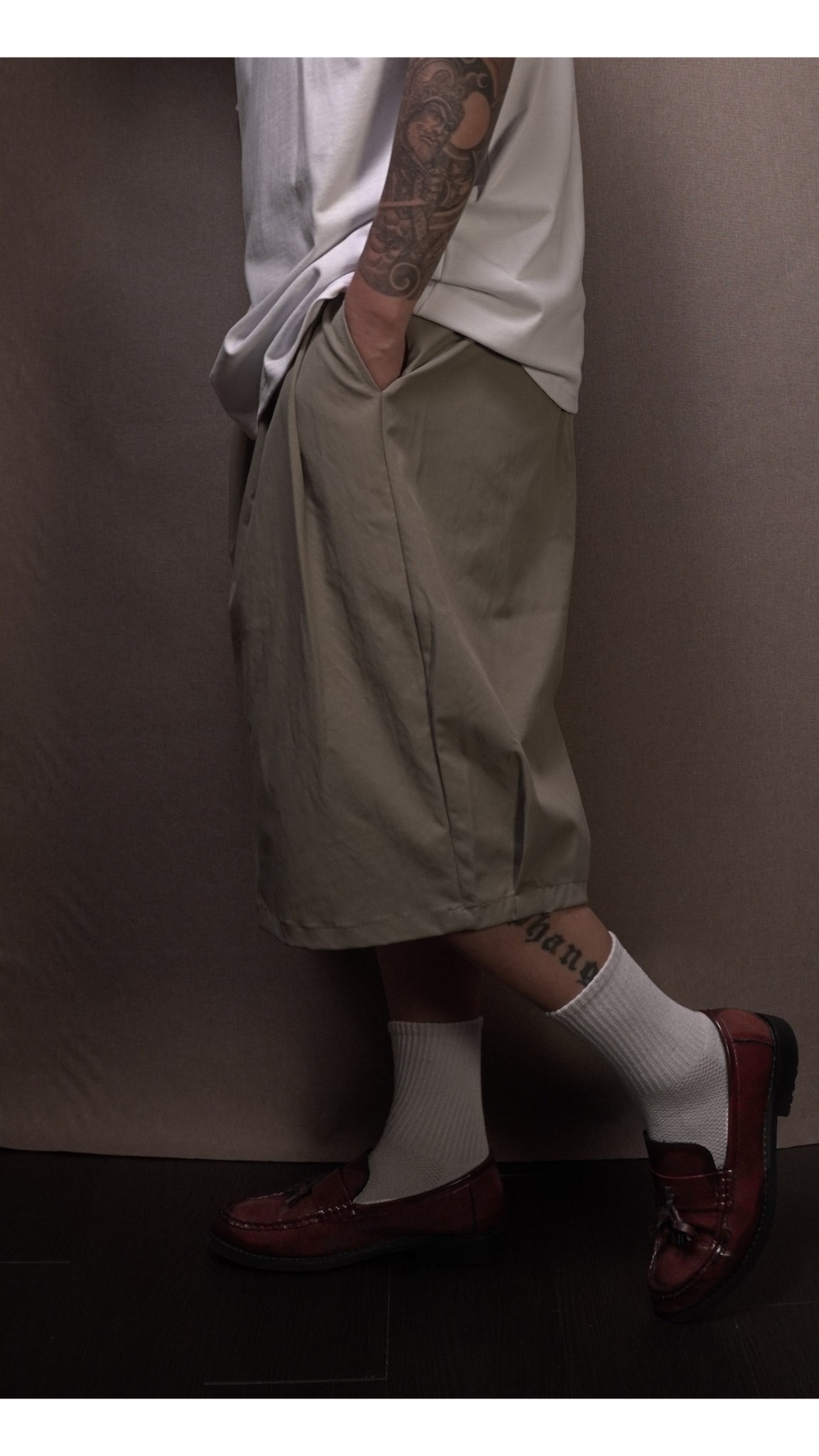 [設計邏輯 | Design Logic] 這是一款以「長褲工藝」打造的短褲。我們保留了手工西褲的內腰結構與倒褶設計,確保在動靜之間,褲管始終維持挺拔的建築線條。 Crafted with the precision of bespoke tailoring. From the internal waistband structure to the sharp creases, these shorts maintain an architectural silhouette throughout the day.