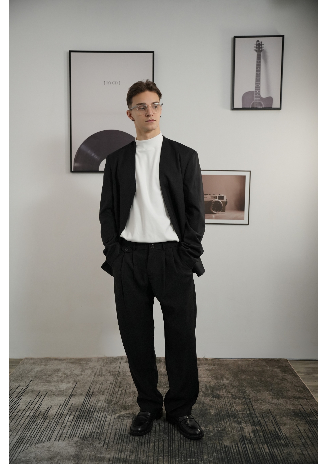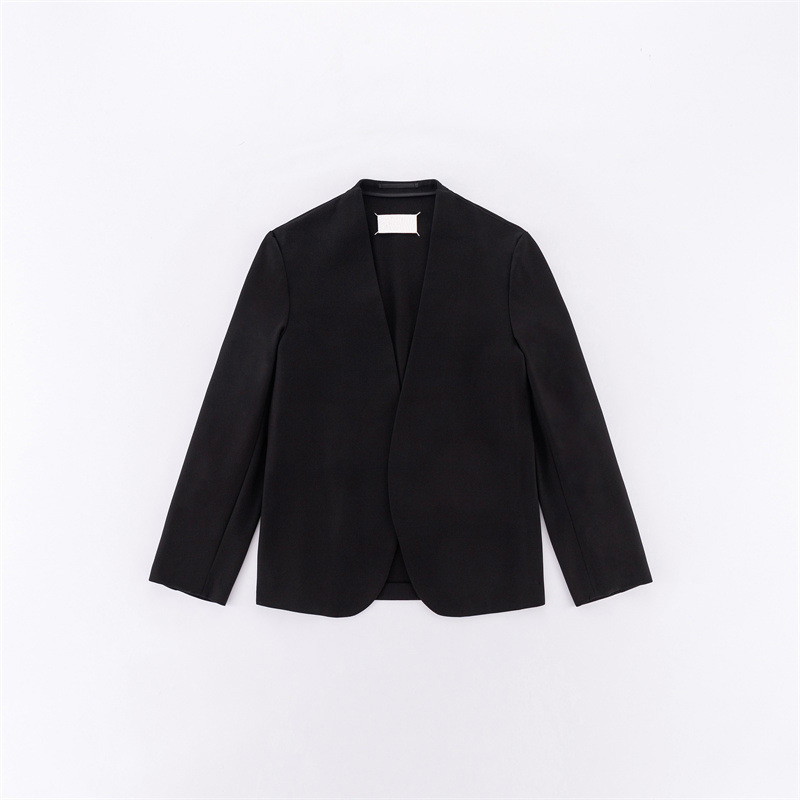 以極簡的設計哲學融合高級羊毛質感,VOYOU全新推出2025秋冬羊毛休閒無領西裝外套。