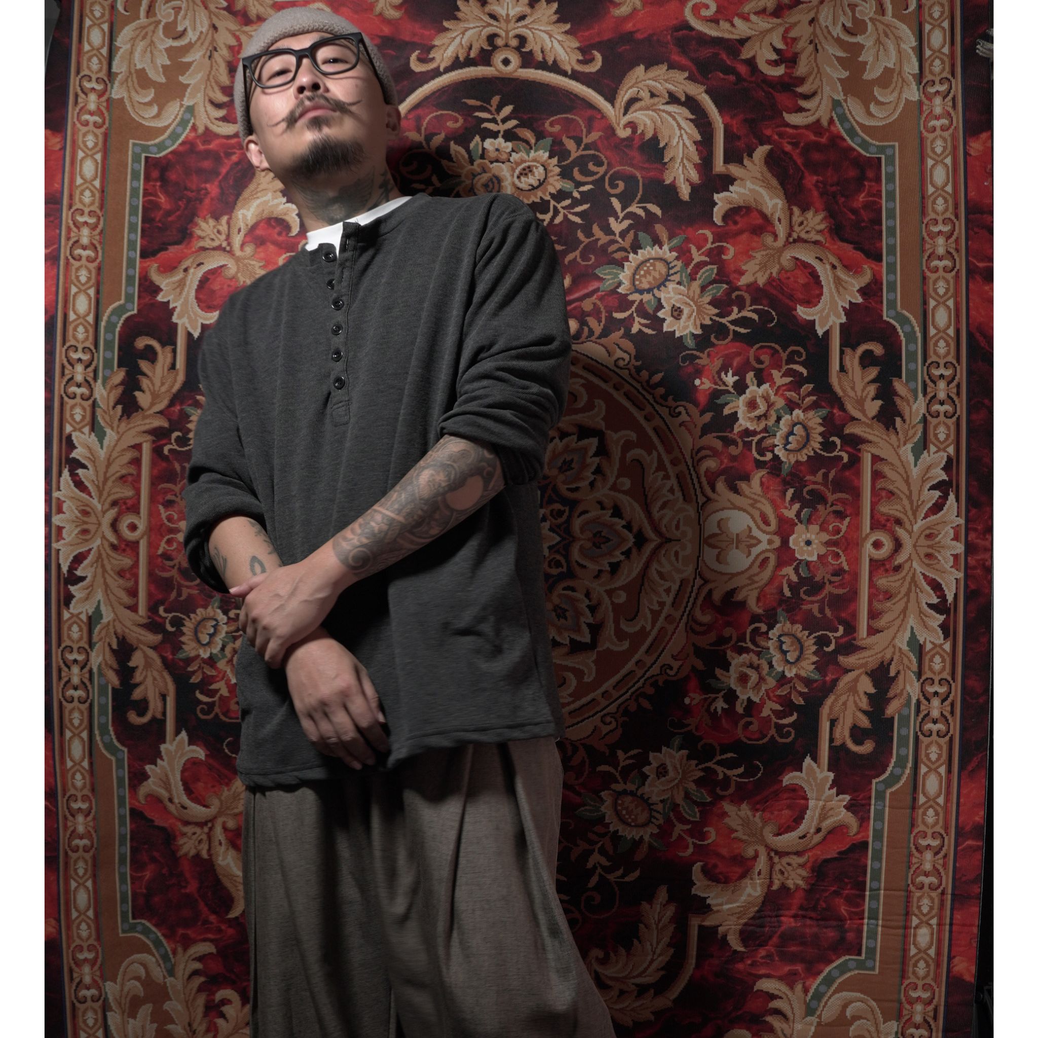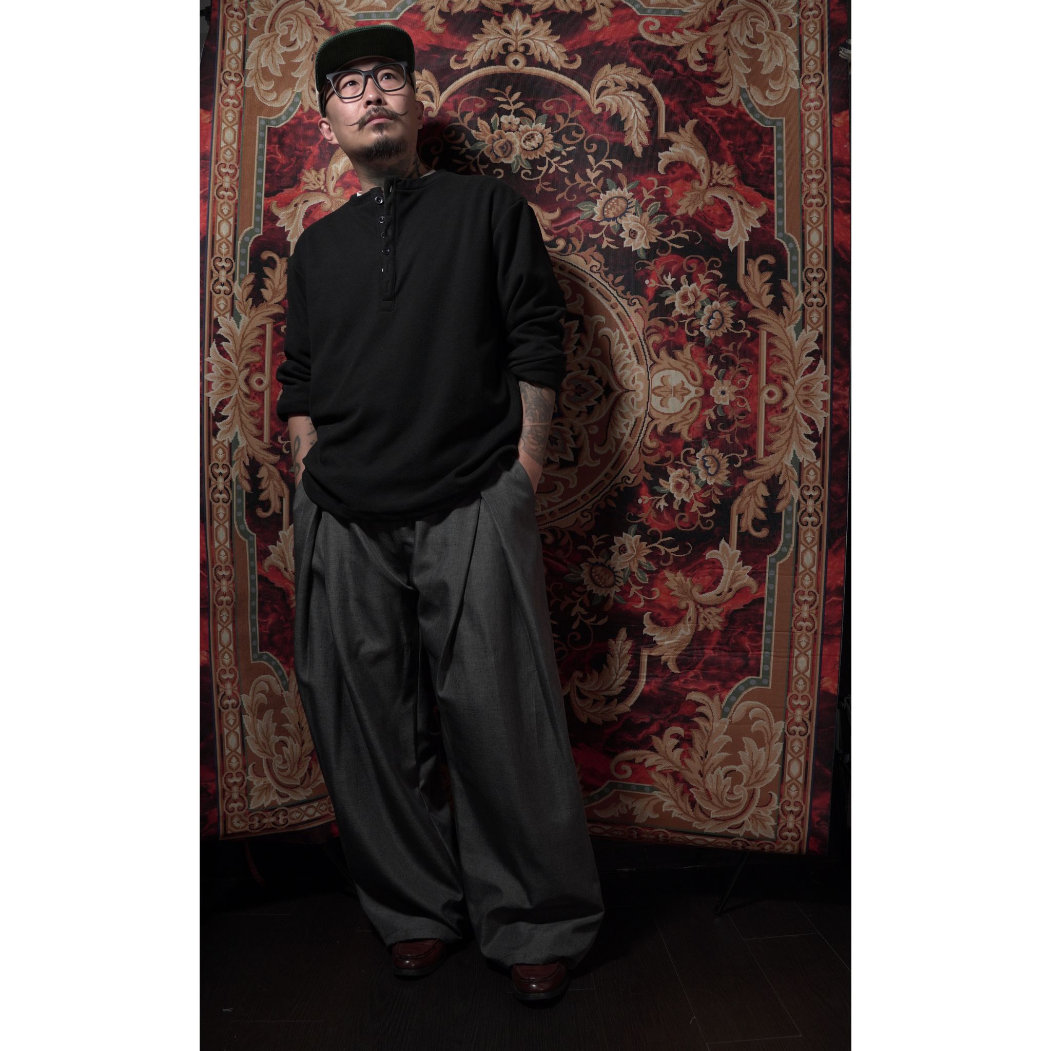 比起普通的圓領 T,亨利領多了一份紳士的優雅。 重磅布料自帶的微磨砂質感,讓純色單品也能擁有豐富的視覺層次。