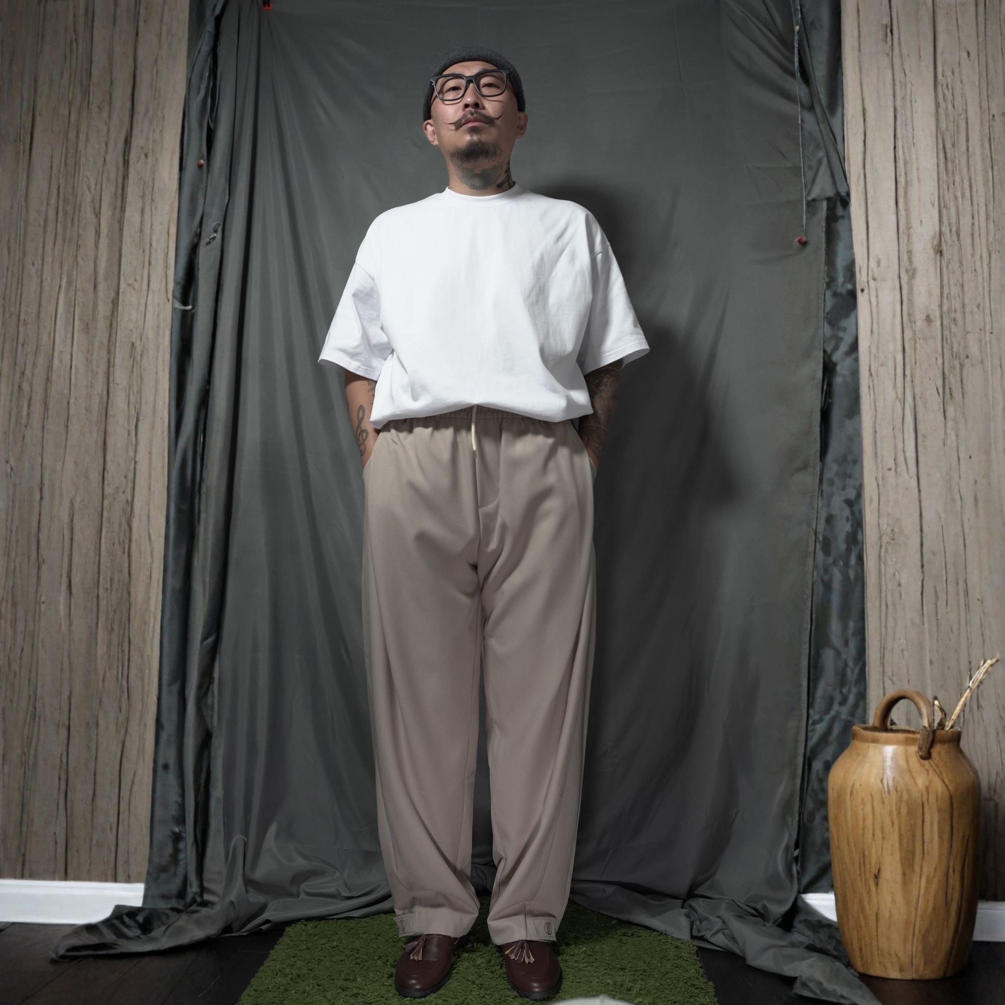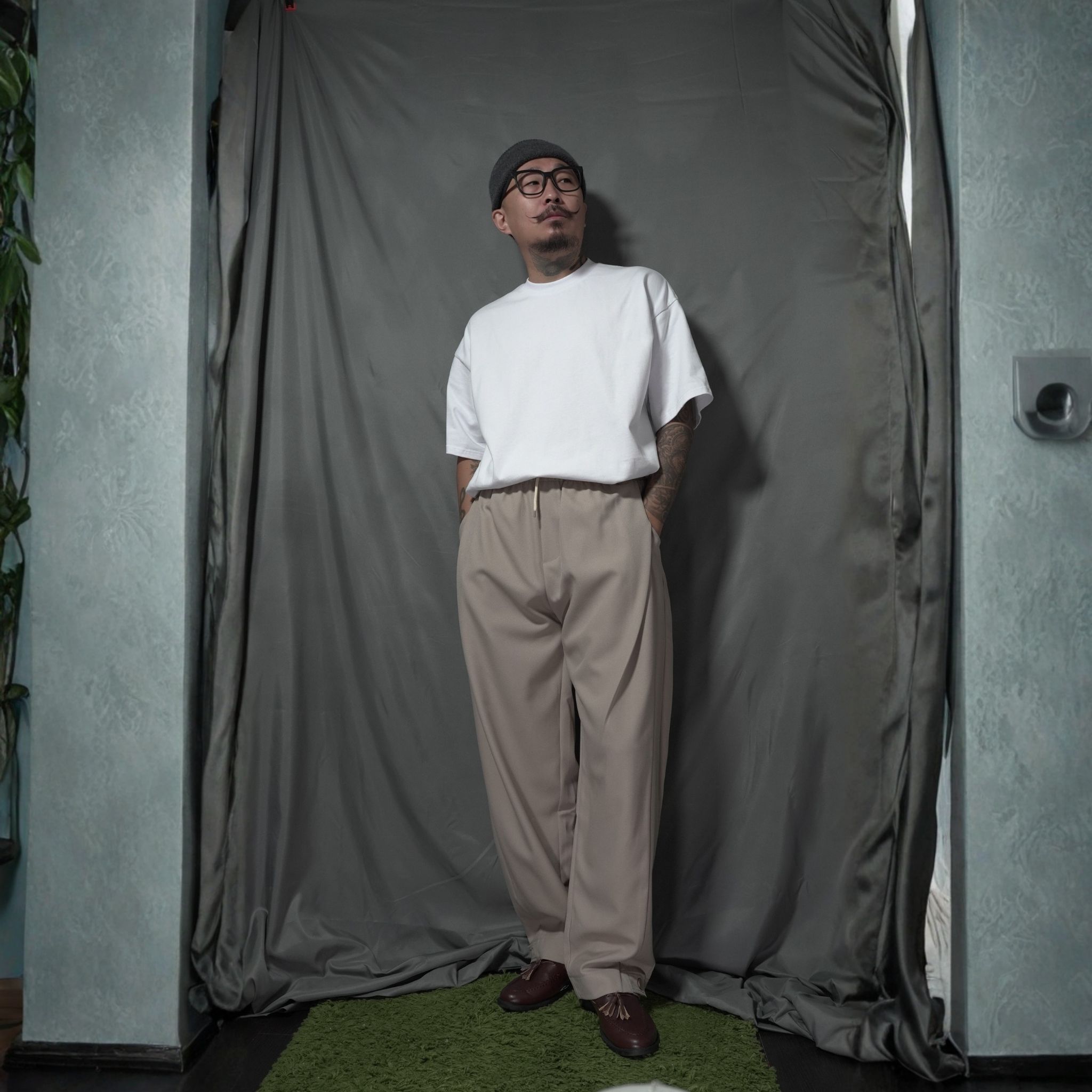 前打褶設計,讓褲型在寬鬆中保有立體結構,不顯拖沓。The adjustable hem allows flexible styling—from sharp tailoring to casual drape.